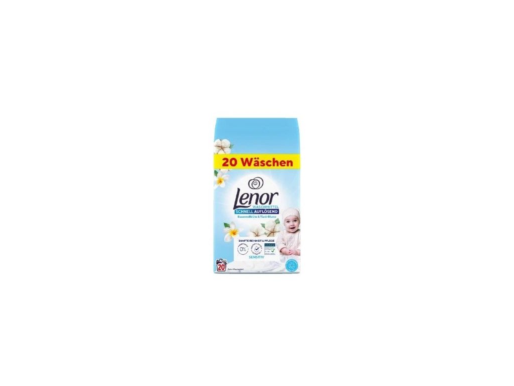 Vyskúšajte prášok na pranie Lenor Sensitive s vôňou kvetu bavlny a tiare, ktorý zabezpečí jemnú čistotu a starostlivosť. Jemná formula s jemným zápachom bola vyvinutá s ohľadom na ochranu citlivej pokožky. Lenor Sensitive je dermatologicky testovaný, má hypoalergénnu vôňu a obsahuje 0% farbív. Je držiteľom certifikátu Európskej nadácie pre výskum alergií (ECARF). Vďaka rýchlo rozpúšťajúcej sa formule, ktorá sa stáva aktívnou pri kontakte s vodou, sa prášok na pranie Lenor okamžite rozpúšťa, čím zabraňuje vzniku zvyškov prášku. Obal je plne recyklovateľný.Obsah balenia 1,2kg 20PD.Dodatočné parametre