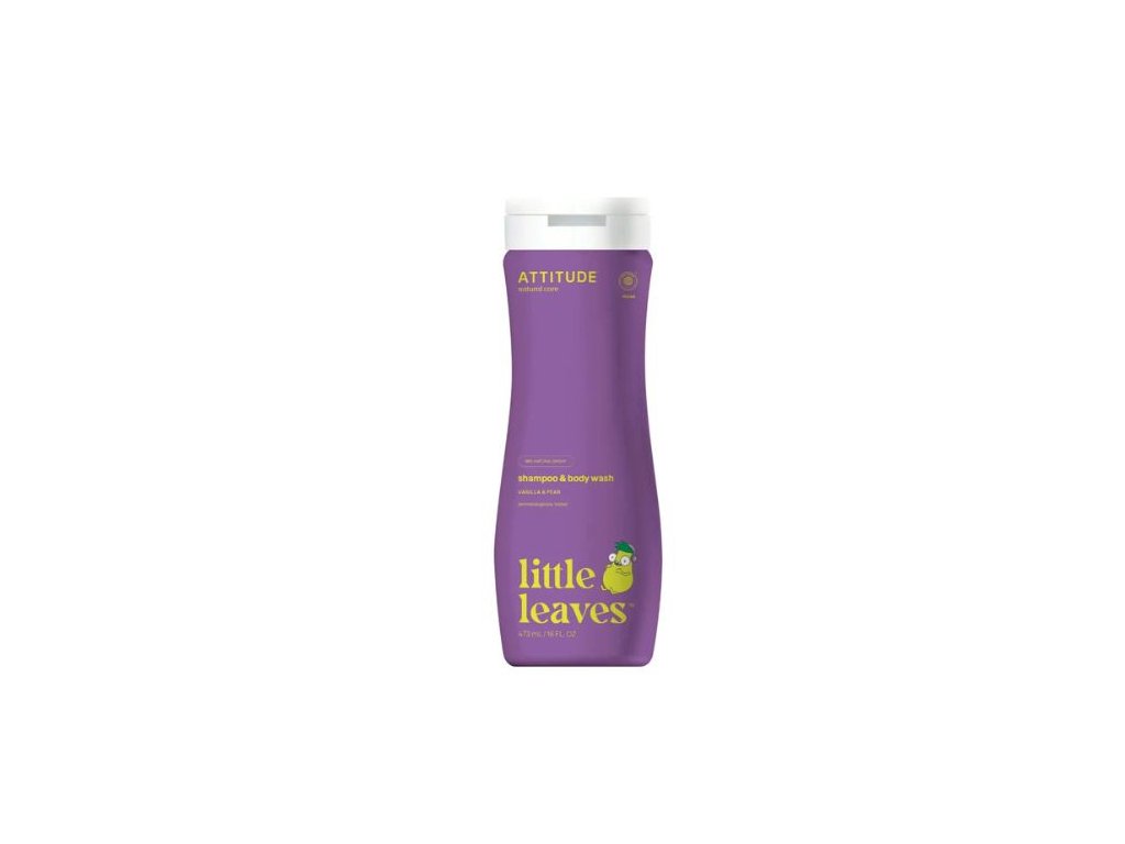 Little leaves Detské telové mydlo a šampón (2v1) s vôňou vanilky a hrušky Attitude 473ml Prírodný, certifikovaný, hypoalergénny a dermatologicky testovaný šampón a telové mydlo pre deti v jednom. Kombinácia šampónu a telového mydla Vám zaručene uľahčí čas kúpania a príjemná vôňa hruškovej šťavy s vanilkou spríjemní chvíle vo vani. Šampón a telové mydlo ATTITUDE je obohatené o výťažky z listu čučoriedky a semien moringy. Listy čučoriedky sú bohaté na vitamíny a minerály a sú známe pre ich upokojujúce a ochranné vlastnosti. Semená moringy obsahujú veľké množstvo vitamínov, minerálov a proteínov. Úžasná aktívna zložka týchto semien zamedzuje vstrebávaniu škodlivín z ovzdušia a ďalších poškodzujúcich vonkajších vplyvov. Ideálne pre deti ako prirodzená ochrana pre ich jemnú a citlivú pokožku. - 100% recyklovatelný obal. Certifikáty PETA (People for the Ethical Treatment of Animals),EWG (Environmental Working Group),EcoLogoDodatočné parametre