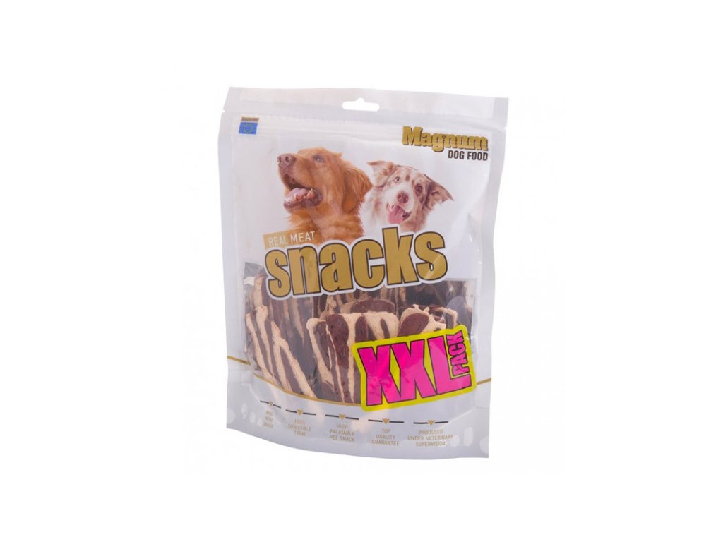 Magnum Dog Food Beef & Cod Fillet je pamlsok zo sušeného mäsa v tvare filetov vhodný pre všetky plemená psov. Chutná a zdravá pochúťka zo skutočného mäsa. Obsahuje dva druhy živočíšnej zložky: hovädzie a treska.Dodatočné parametre