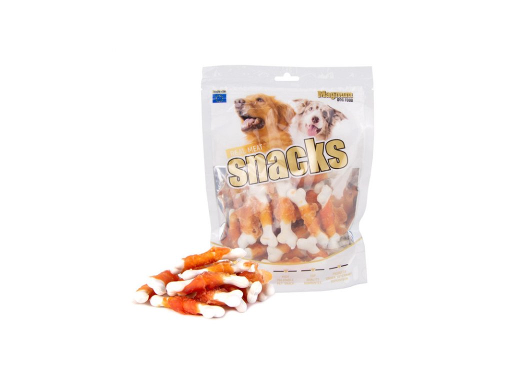 Magnum Dog Food Chicken Bone Wrap je pamlsok zo sušeného mäsa vhodné pre všetky plemená psov. Chutná a zdravá pochúťka zo skutočného mäsa. Obsahuje jediný druh živočíšnej zložky: kura.Dodatočné parametre