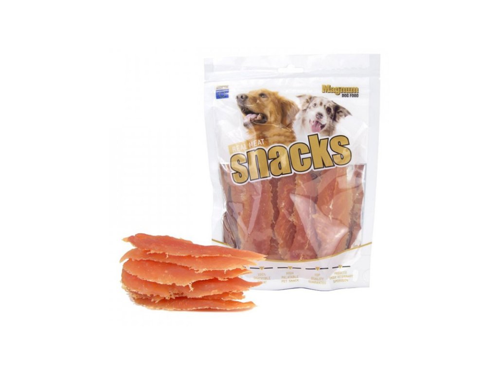 Magnum Dog Food Chicken Breast Soft je pamlsok zo sušeného mäsa vhodné pre všetky plemená psov. Chutná a zdravá pochúťka zo skutočného mäsa. Obsahuje jeden druh živočíšnej zložky: kura.Dodatočné parametre