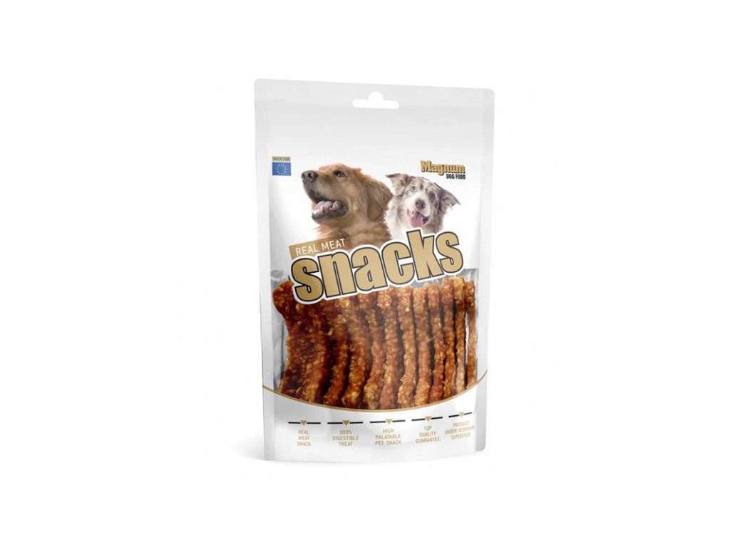 Magnum Dog Food Chicken & Rice Bones je pamlsok zo sušeného mäsa vhodné pre všetky plemená psov. Chutná a zdravá pochúťka zo skutočného mäsa. Obsahuje jediný druh živočíšnej zložky: kura.Dodatočné parametre