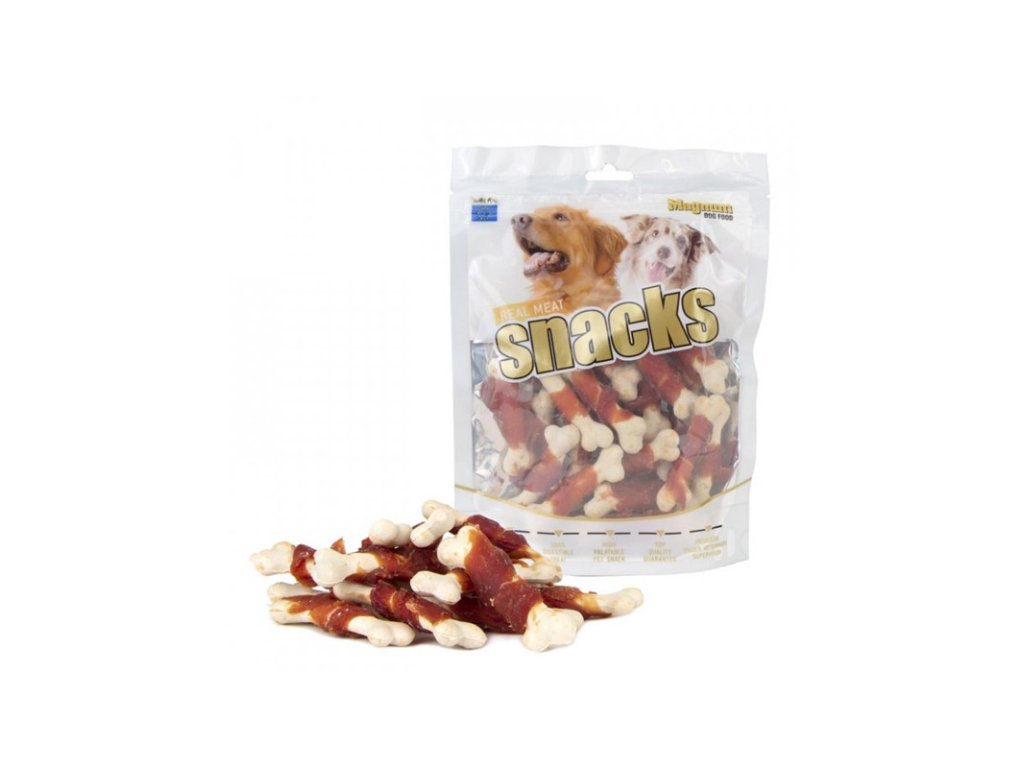 Magnum Dog Food Duck Bone Wrap je pamlsok zo sušeného mäsa vhodné pre všetky plemená psov. Chutná a zdravá pochúťka zo skutočného mäsa. Obsahuje jediný druh živočíšnej zložky: kačica.Dodatočné parametre