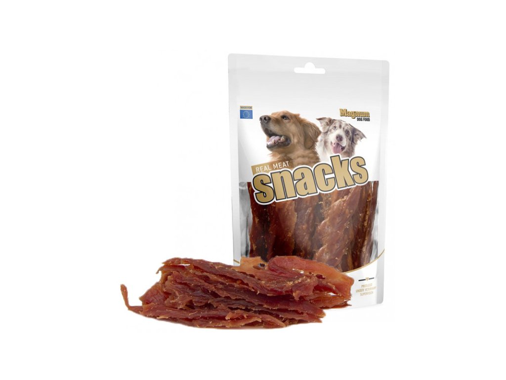 Magnum Dog Food Duck Breast Soft je pamlsok zo sušeného mäsa vhodné pre všetky plemená psov. Chutná a zdravá pochúťka zo skutočného mäsa. Obsahuje jediný druh živočíšnej zložky: kačica.Dodatočné parametre
