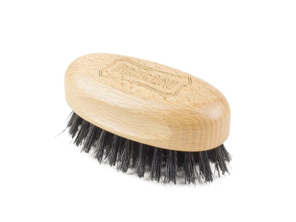 Malá drevená kefa od slávnej talianskej spoločnosti PRORASO ideálna na česanie fúzov a brady. Rukoväť je vyrobená z ľahkého dreva a štetiny sú kombináciou kančích a syntetických vlákien.