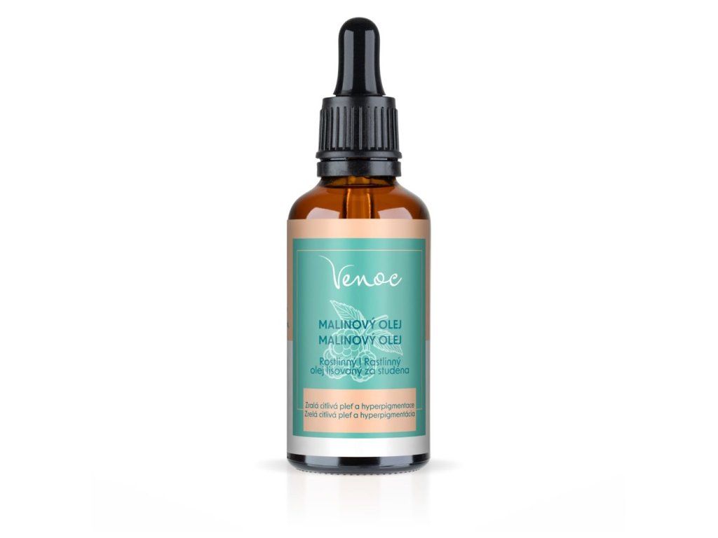 Malinový olej Venoc 50ml Malinový olej Venoc je 100 % prírodný olej lisovaný za studena zo semien malín (Rubus idaeus seed oil). Tento výnimočný olej je bohatý na vitamín E, karotenoidy a omega-3 a omega-6 mastné kyseliny, ktoré pomáhajú regenerovať pleť, zlepšovať jej pružnosť a chrániť ju pred predčasným starnutím. Vďaka svojim antioxidačným a rozjasňujúcim vlastnostiam je ideálny pre zrelú, citlivú alebo unavenú pokožku so sklonom k pigmentovým škvrnám. Pomáha zjednotiť tón pleti, zmierniť nerovnosti a obnoviť zdravý jas. Navyše pôsobí ako prirodzený ochranný filter proti UV žiareniu, čím podporuje dlhodobo zdravý vzhľad pokožky. Olej je vyrobený z bio surovín najvyššej kvality, šetrne spracovaných tak, aby si zachovali maximum účinných látok. Benefity malinového oleja: rozjasňuje a zjednocuje tón pleti, redukuje výskyt pigmentových škvŕn a vrások, regeneruje a zjemňuje zrelú pokožku, chráni pleť pred voľnými radikálmi a stratou vlhkosti, upokojuje podráždenie a začervenanie, vhodný aj na starostlivosť o suché vlasy a pokožku hlavy. Použitie: Naneste niekoľko kvapiek oleja na čistú a mierne vlhkú pokožku tváre, krku alebo dekoltu. Jemne vmasírujte až do vstrebania. Môže sa používať samostatne, ako podklad pod krém alebo v kombinácii s obľúbeným sérom. Odporúča sa používať denne – ráno aj večer. Malinový olej môžete pridať aj do vlasovej masky či telového mlieka pre extra výživu. Pre koho je určený: Pre tých, ktorí trpia hyperpigmentáciou, stratou pružnosti alebo citlivosťou pokožky. Je vhodný pre zrelú pleť, ktorá potrebuje regeneráciu, hydratáciu a rozjasnenie. Upozornenie: Len na vonkajšie použitie. Uchovávajte na chladnom, tmavom mieste mimo priameho slnečného svetla. Vyhnite sa kontaktu s očami. Pri alergii na niektorú zložku produkt nepoužívajte.Dodatočné parametre