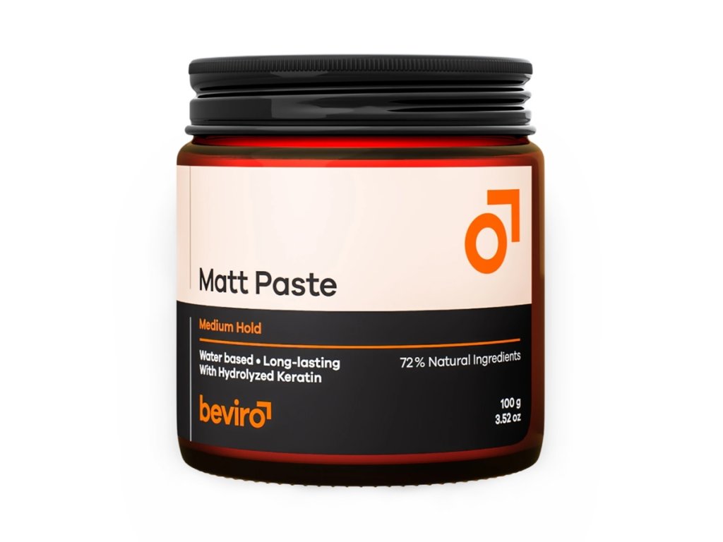 Matná pasta BEVIRO s strednou fixáciou je najuniverzálnejší stylingový produkt, aký si len môžete dať do vlasov. Úplne matná, takže nikto nič nepozná. Vlasy nelepí a ľahko sa vymýva.
