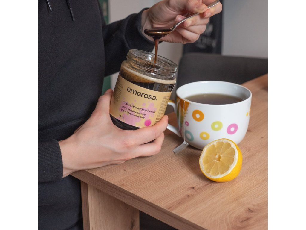 Objavte medovicový med EMEROSA, ktorý vzniká z medovice, sladkej šťavy produkovanej hmyzom žijúcim na stromoch. Tento med má charakteristickú tmavú farbu – od tmavohnedej po čiernu – a intenzívnu, komplexnú chuť s tónmi karamelu, masla a korenia. Je ideálny pre tých, ktorí hľadajú nezvyčajný zážitok.
