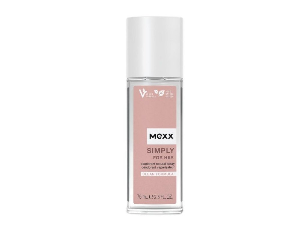 Prírodný dezodorant v spreji pre ženy Mexx Simply má sviežu, elegantnú vôňu v súlade s myšlienkou minimalizmu. Jeho čisté, vegánske zloženie prezrádza inšpiráciu prírodou. Je to čistá, upokojujúca a jedinečne ženská kompozícia ovocných a kvetinových tónov, ktorá bude dokonalým darčekom na akúkoľvek príležitosť. Evokuje jemné lúče ranného slnka a neoceniteľné chvíle blaženej radosti. Citrusové tóny bergamotu a mandarínky sa miešajú so šťavnatými čiernymi ríbezľami a výsledkom je pocit jemnej sviežosti. Srdcom kompozície je moderná kytica ruže a konvalinky, zvýraznená žiarivým tónom hrušky. Plynule prechádza do živicových tónov santalového dreva a benzoínu, ktoré vytvárajú upokojujúci, hladký záver vône.Objem balenia 75ml.Dodatočné parametre