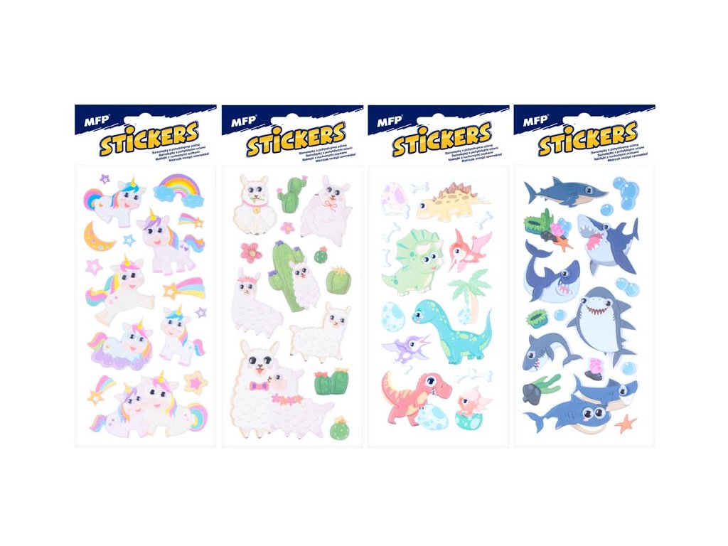 Samolepky s obrázkami jednorožcov, lám, dinosaurov a žralokov. Tieto úžasné samolepky majú navyše pohyblivé oči. Vhodné ako dekorácia do zošita, poznámkového bloku alebo na pohľadnice. Týmito krásnymi samolepkami, ktoré vynikajú svojou farebnosťou, môžete ozdobiť čokoľvek, čo vás napadne, napríklad darček, obálku, pohľadnicu, zápisník, mobil, zrkadlo atď. Motív: jednorožci, lamy, dinosaury, žraloky Návod: Jednoducho nalepte na akýkoľvek hladký povrch. UPOZORNENIE: Nie je to hračka, odstráňte obal z dosahu detí. Používajte pod dohľadom dospelej osoby. Dodáva sa v mixe 4 kusov podľa skladových zásob. Uvedená cena je za 1 balenie.Dodatočné parametre