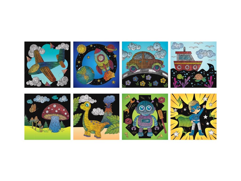 MFP 1032396 Škrabací obrázok blok 15x15cm 8l MAGIC boys