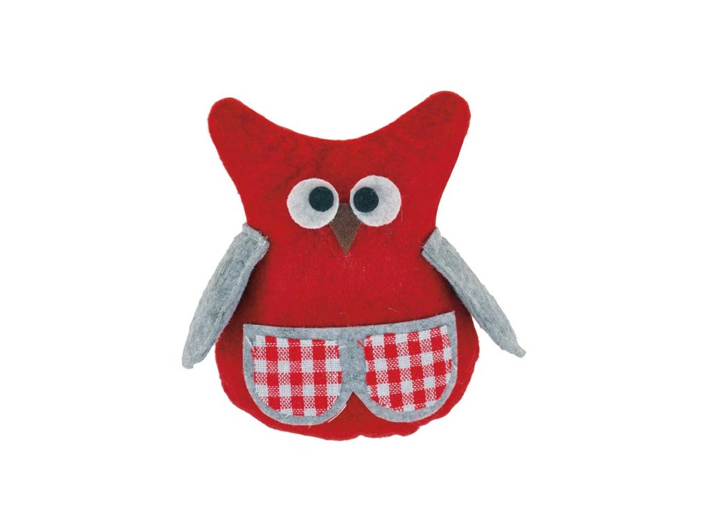 MFP 1041879 Sova filc 12 cm červená károvaná