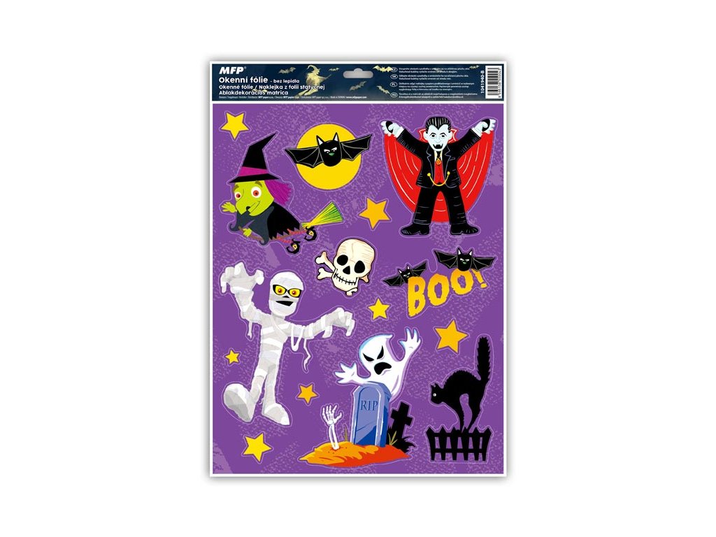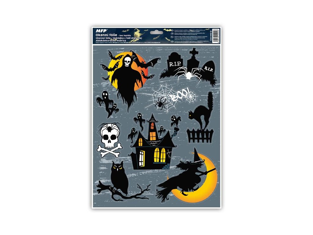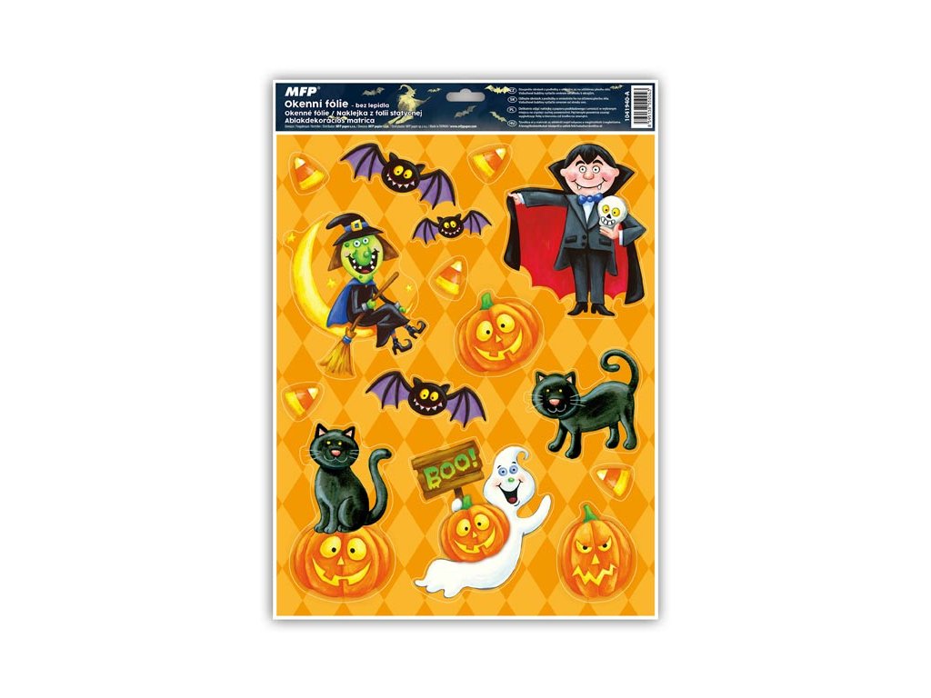 Okenná fólia s trblietkami Halloween. Ozdobte si okno týmito krásnymi okennými samolepkami. Vytvoria tú správnu halloweensku atmosféru. Vhodné sú akékoľvek hladké plochy, napríklad sklo, výlohy, zrkadlá alebo kachličky. Čisté, bez lepidla a opakovane použiteľné. NÁVOD: 1. Odlepte obrázok z podkladu a umiestnite ho na čisté alebo navlhčené sklo tou stranou, ktorá bola na podklade. 2. Obrázok sa prilepí elektrostaticky. 3. Fólia sa ľahko odlepí a dá sa opätovne umiestniť. Dodávame v mixe po 4 ks podľa skladovej zásoby. Cena je uvedená za 1 ks.Dodatočné parametre