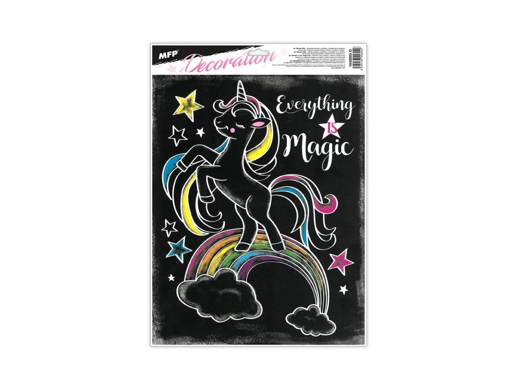 Okenná fólia čierna s motívom jednorožca, lamy, plameniakov alebo ananásu. Vyzdobte si okno týmito krásnymi samolepkami na okno. Vytvorí Vám kúzelnú atmosféru domova. Vhodné sú na akékoľvek hladké plochy, napríklad sklo, výlohy, zrkadlá alebo kachličky. Čisté, bez lepidla a opakovane použiteľné. NÁVOD: 1. Zlúpnite obrázok z podložky a umiestnite na čisté, prípadne navlhčené sklo stranou, ktorá je na podložke. 2. Obrázok elektrostaticky priľne. 3. Fólia sa ľahko zlúpne a dá sa premiestniť. Dodávame v mixe po 4 ks podľa skladovej zásoby. Uvedená cena je za 1 ks.Dodatočné parametre