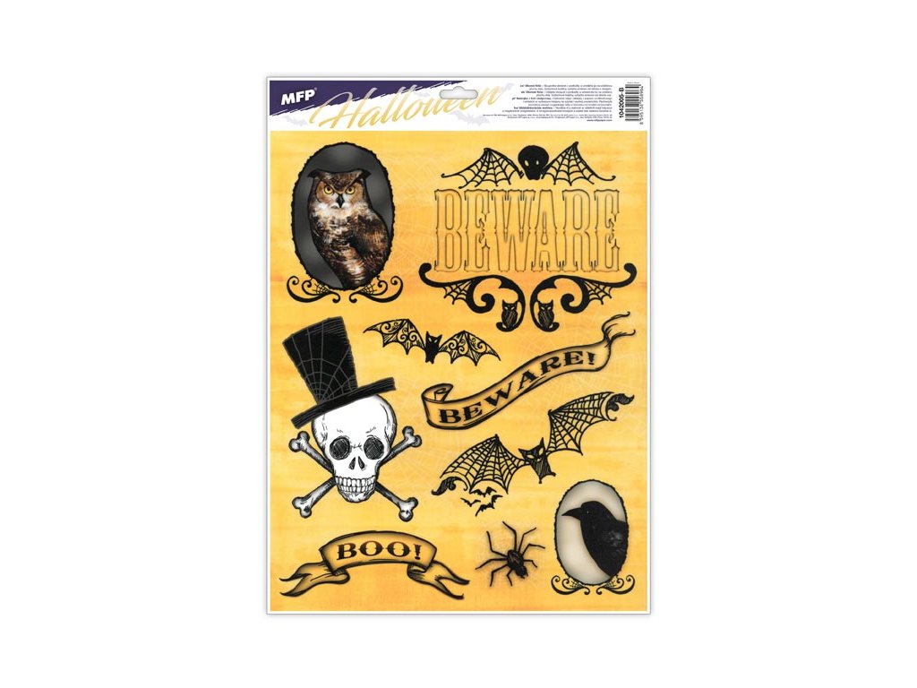 Okenná fólia Halloween. Vyzdobte si okno týmito strašidelnými samolepkami na okno. Vytvorí Vám tú pravú halloweensku atmosféru. Vhodné sú na akékoľvek hladké plochy, napríklad sklo, výlohy, zrkadlá alebo kachličky. Čisté, bez lepidla a opakovane použiteľné. NÁVOD: 1. Zlúpnite z podložky obrázok a umiestnite na čisté, prípadne navlhčené sklo stranou, ktorá bola na podložke. 2. Obrázok elektrostaticky priľne. 3. Fólia sa ľahko zlúpne a dá sa premiestniť. Dodávame v mixe po 4 ks podľa skladovej zásoby. Uvedená cena je za 1 ks.Dodatočné parametre