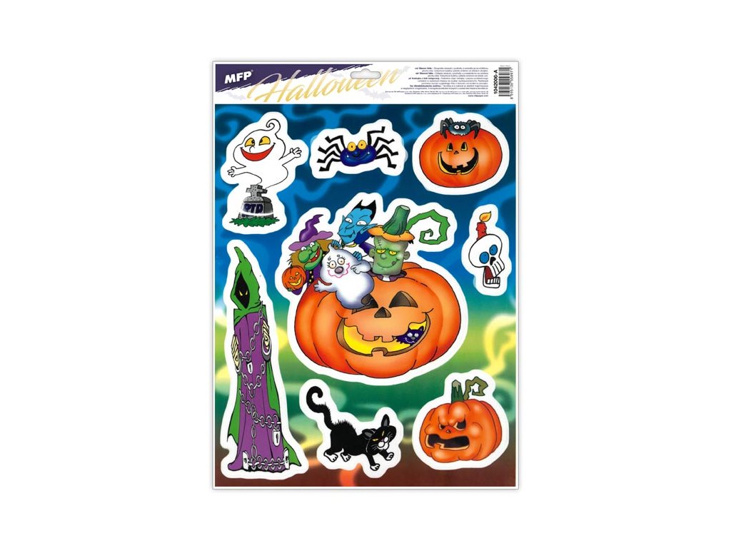 Okenná fólia Halloween. Vyzdobte si okno týmito strašidelnými samolepkami na okno. Vytvorí Vám tú pravú halloweensku atmosféru. Vhodné sú na akékoľvek hladké plochy, napríklad sklo, výlohy, zrkadlá alebo kachličky. Čisté, bez lepidla a opakovane použiteľné. NÁVOD: 1. Zlúpnite z podložky obrázok a umiestnite na čisté, prípadne navlhčené sklo stranou, ktorá bola na podložke. 2. Obrázok elektrostaticky priľne. 3. Fólia sa ľahko zlúpne a dá sa premiestniť. Dodávame v mixe po 4 ks podľa skladovej zásoby. Uvedená cena je za 1 ks.Dodatočné parametre