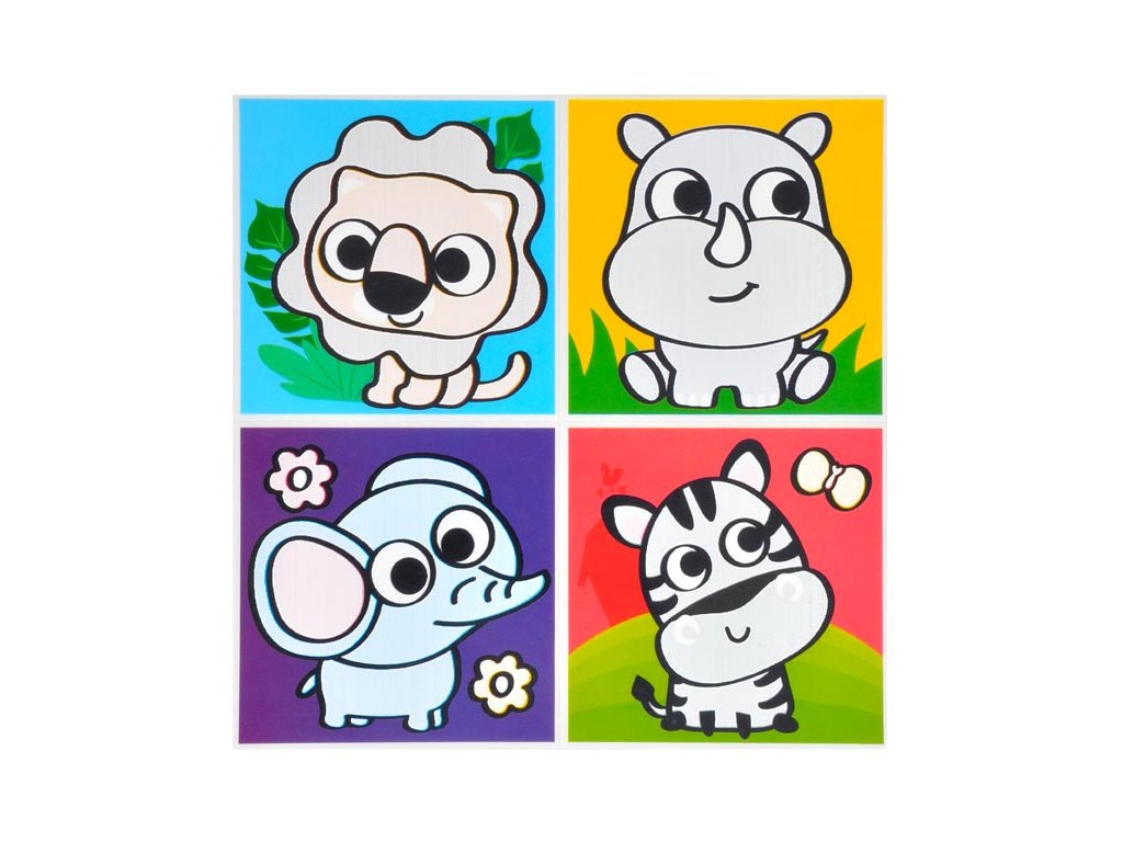 Fólia do kúpeľne, na ktorú sa môže maľovať vodou. Vyzdobte deťom kúpeľňu zábavnými obrázkami, ktoré prilepíte na kachličky, zrkadlo či na okná. Obrázky sú na fólii, ktorá antistaticky priľne na hladký povrch. Naviac, po navlhčení obrázkov vystupujú farby. Po zaschnutí sa farby opäť osvetlia. Obrázok sa môže opakovane odlepiť a prilepiť na iný povrch. Na obrázkoch nájdete zvieratá a dopravné prostriedky. Návod na použitie: Pretrite biele plochy vodou a obrázok sa začne sám zafarbovať. Po zaschnutí sa môžu obrázky opakovane zafarbiť. Upozornenie: Nevhodné pre deti do 3 rokov. Nebezpečenstvo udusenia. Môže obsahovať malé časti. Súprava obsahuje 4 obrázky. Uvedená cena je za 1 hárok.Dodatočné parametre