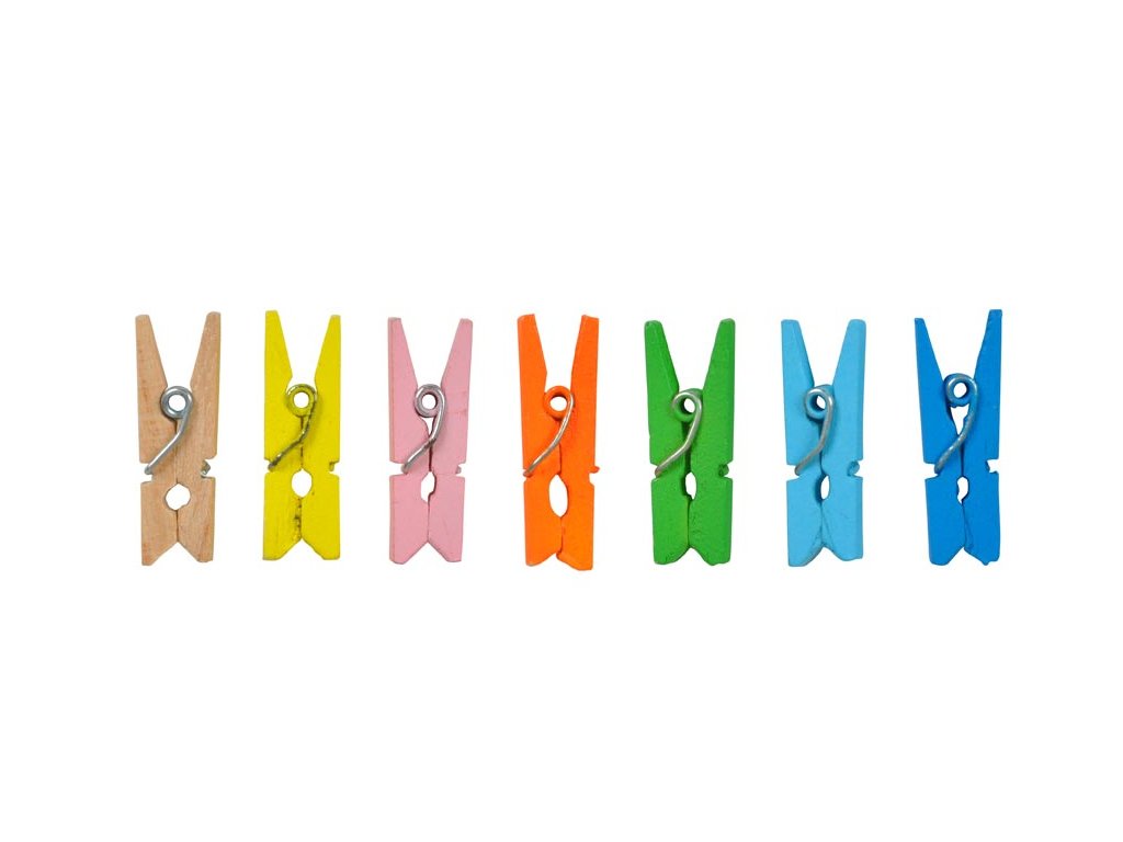 Farebné drevené dekoračné kolíky. Mix farieb: hnedá, žltá, ružová, oranžová, zelená, svetlomodrá, tmavomodrá BALENIE OBSAHUJE: - 50 ks štipcov Dĺžka: 25 mm Balené vo vrecúšku so závesom. Uvedená cena je za 1 balenie.Dodatočné parametre
