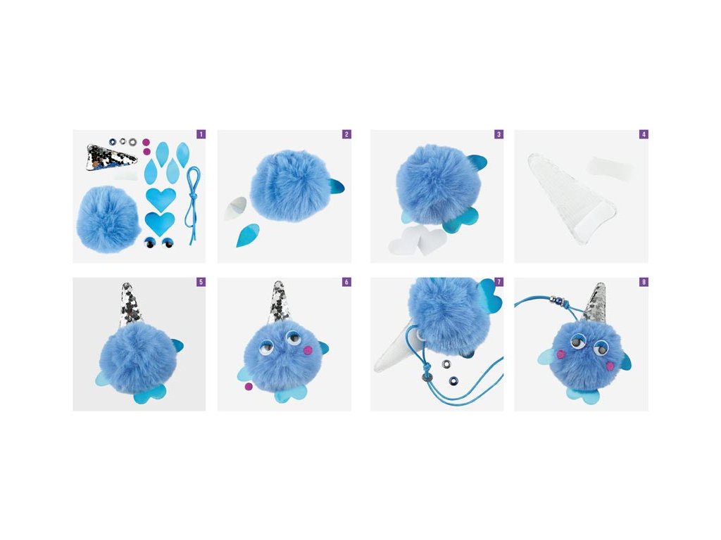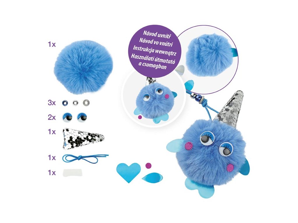 Kreatívny set – prívesok modrý BALENIE OBSAHUJE: - 1 x pom pom - 3 x koralky - 2 x samolepiace oči - 1 x bavlnená šnúrka - 1 x polstrovaný (čalúnený) roh - 4 x samolepka - 1 x návod na použitie VAROVANIE: Nevhodné pre deti do 3 rokov. Obsahuje malé časti, hrozí nebezpečenstvo udusenia. Uvedená cena je za 1 balenie.Dodatočné parametre