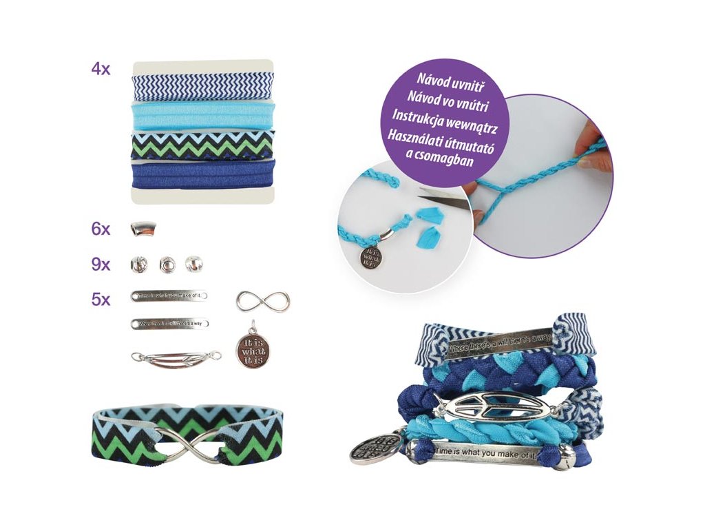 Kreatívny set - náramky 5 ks BALENIE OBSAHUJE: - 4 x elastická šnúrka - 6 x rúrkový korál - 9 x korál - 5 x prívesok - 1 x návod na použitie VAROVANIE: Nevhodné pre deti do 3 rokov. Obsahuje malé časti, hrozí nebezpečenstvo udusenia. Uvedená cena je za 1 balenie.Dodatočné parametre