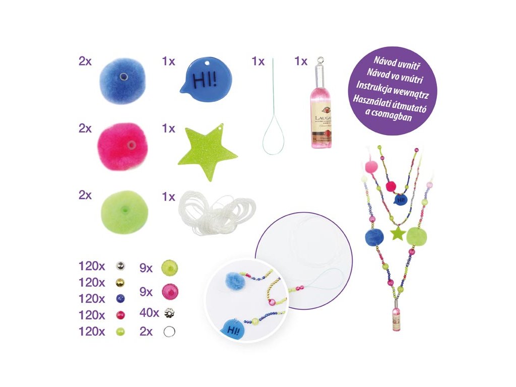 Kreatívny set – náhrdelníky BALENIE OBSAHUJE: - 6 x pom pom - 3 x prívesok - 1 x šnúrka - 1 x ihla - 658 korálikov - 2 x krúžky - 1 x návod na použitie VAROVANIE: Nevhodné pre deti do 3 rokov. Obsahuje malé časti, hrozí nebezpečenstvo udusenia. Uvedená cena je za 1 balenie.Dodatočné parametre