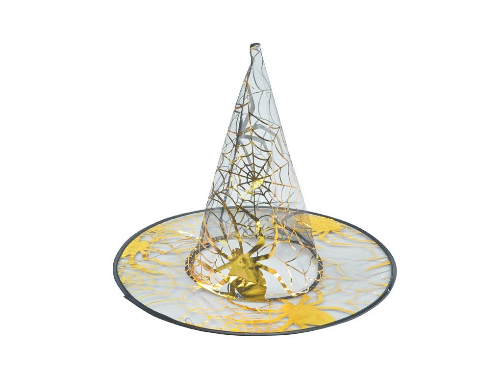MFP 1042271 Klobúk čarodejnícky čiernozlatý priehľadný 32x32cm