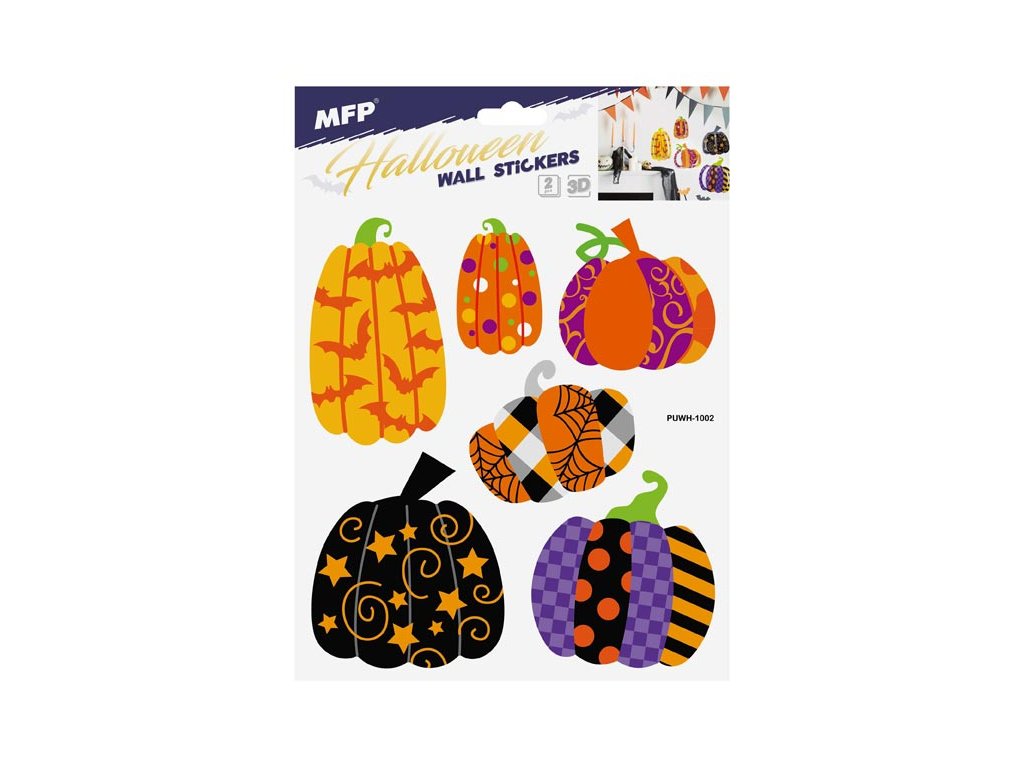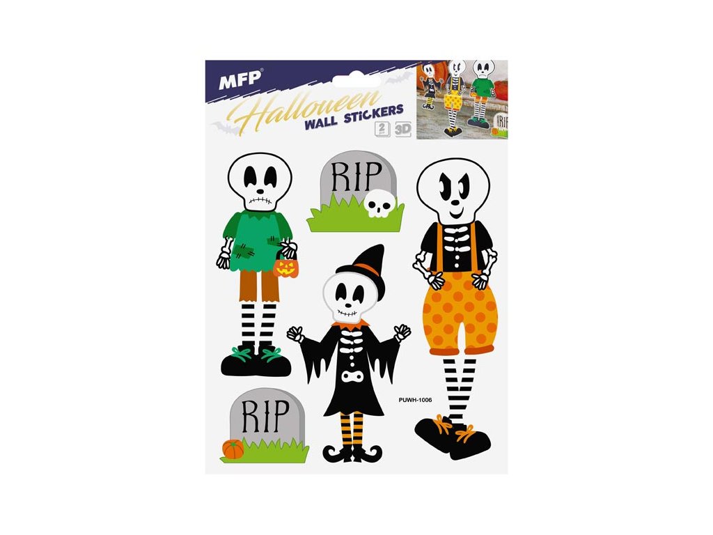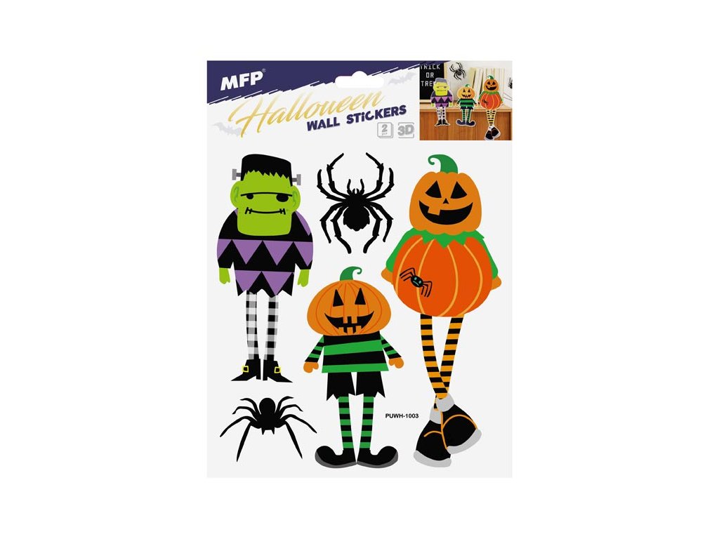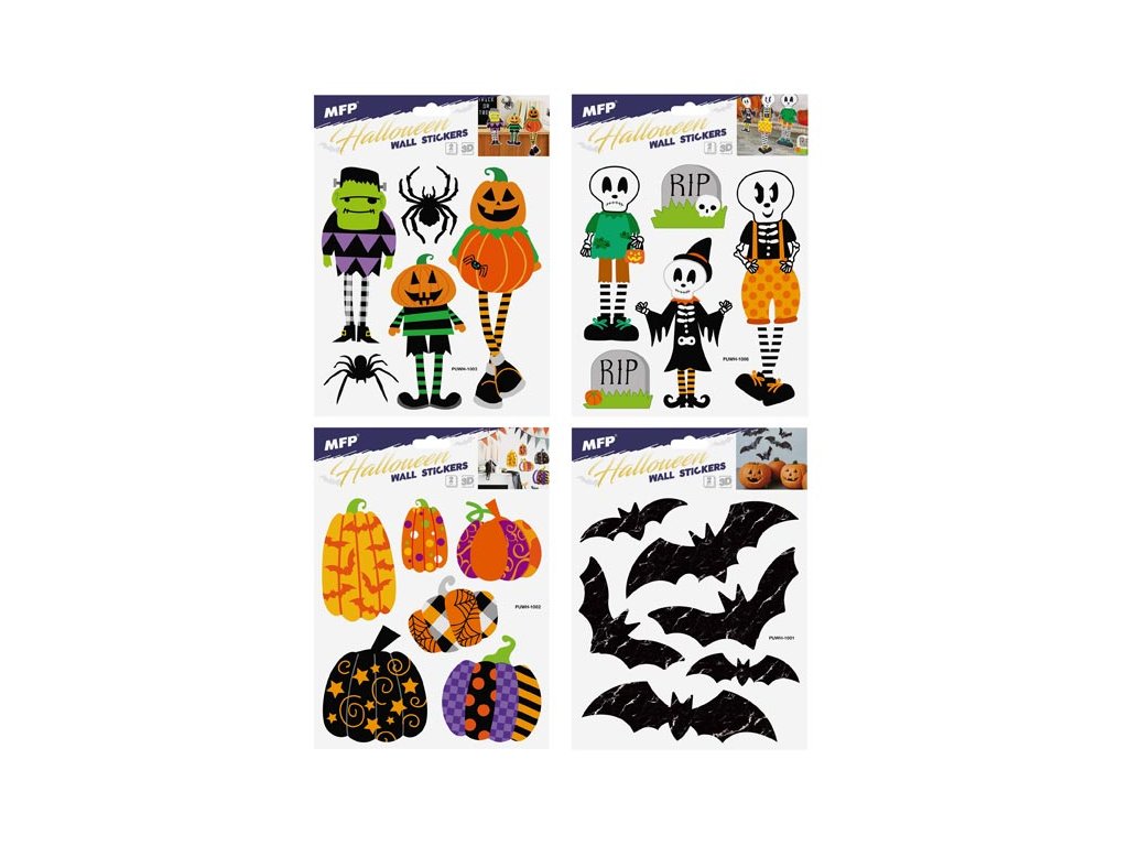 Dekorace na stenu Halloween. Vhodná na stěny, okna, zrcadla, kachličky a jiné hladké plochy! NÁVOD: Opatrně sejměte samolepku z podkladového papíru a umístěte ji na zvolenou suchou a čistou plochu. Vyhlaďte od středu ke krajům. Dodáváme v mixu 4 ks dle skladové zásoby. Uvedená cena je za 1 arch.Dodatočné parametre