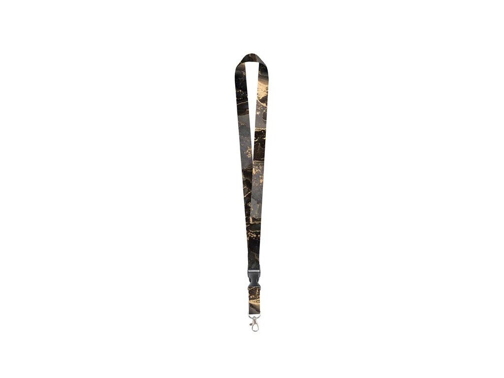 Klíčenka na krk - Gold Marble. Tato klíčenka na krk s elegantním motivem zlatého mramoru je perfektním doplňkem pro ty, kteří mají rádi sofistikovaný a stylový vzhled. Černý podklad s jemnými zlatými detaily vytváří luxusní dojem a dodává klíčence unikátní charakter. Je ideální pro bezpečné a pohodlné nošení klíčů, ID karet nebo malého USB flash disku. Rychloupínací přezka umožňuje snadné oddělení klíčů nebo karty bez nutnosti sundávat celou klíčenku z krku. Pevná karabina zajišťuje bezpečné upevnění klíčů a dalších drobností. Vyrobena z lehkého a příjemného materiálu, který poskytuje komfort i při celodenním nošení. Motiv: mramor Uvedená cena je za 1 ks.Dodatočné parametre