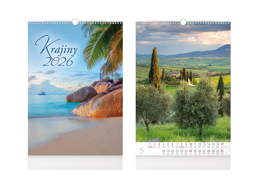 Nástěnný kalendář na rok 2026 s názvem Krajiny. Kochejte se fotkami překrásných krajin z celého světa a inspirujte se, kam na dovolenou. Vhodný k organizování různých událostí každodenního života. Možnost dotisku firemního loga a textu na spodní stranu kalendáře. TYP KALENDÁŘE: nástěnný OBRÁZKY: malebné krajiny v různých destinacích V KALENDÁŘI NAJDETE: - státní svátky, významné dny CZ/SK - jmeniny CZ/SK - název aktuálního měsíce - týdny Kalendárium: měsíční Vazba: dvojitá spirála Rozměr: 320 x 450 mm Rozsah kalendáře: 14 listů Kalendář je opatřený kroužkovou vazbou se závěsem. Uvedená cena je za 1 ks.Dodatočné parametre