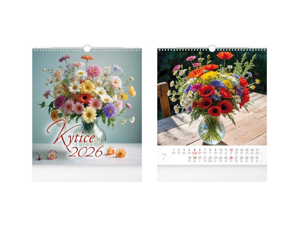Nástěnný malý kalendář na rok 2026 s názvem Kytice. Kochejte se fotkami krásných kytic a inspirujte se. Vhodný k organizování různých událostí každodenního života. Možnost dotisku firemního loga a textu na spodní stranu kalendáře. OBRÁZKY: kytice TYP KALENDÁŘE: nástěnný V KALENDÁŘI NAJDETE: - státní svátky, významné dny CZ/SK - jmeniny CZ/SK - název aktuálního měsíce - týdny Kalendárium: měsíční Vazba: dvojitá spirála Rozměr: 320 x 340 mm Rozsah kalendáře: 14 listů Kalendář je opatřený kroužkovou vazbou se závěsem. Uvedená cena je za 1 ks.Dodatočné parametre