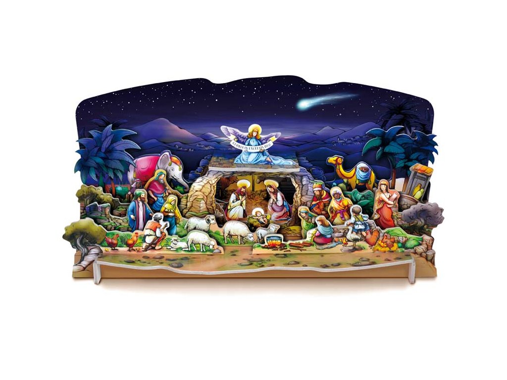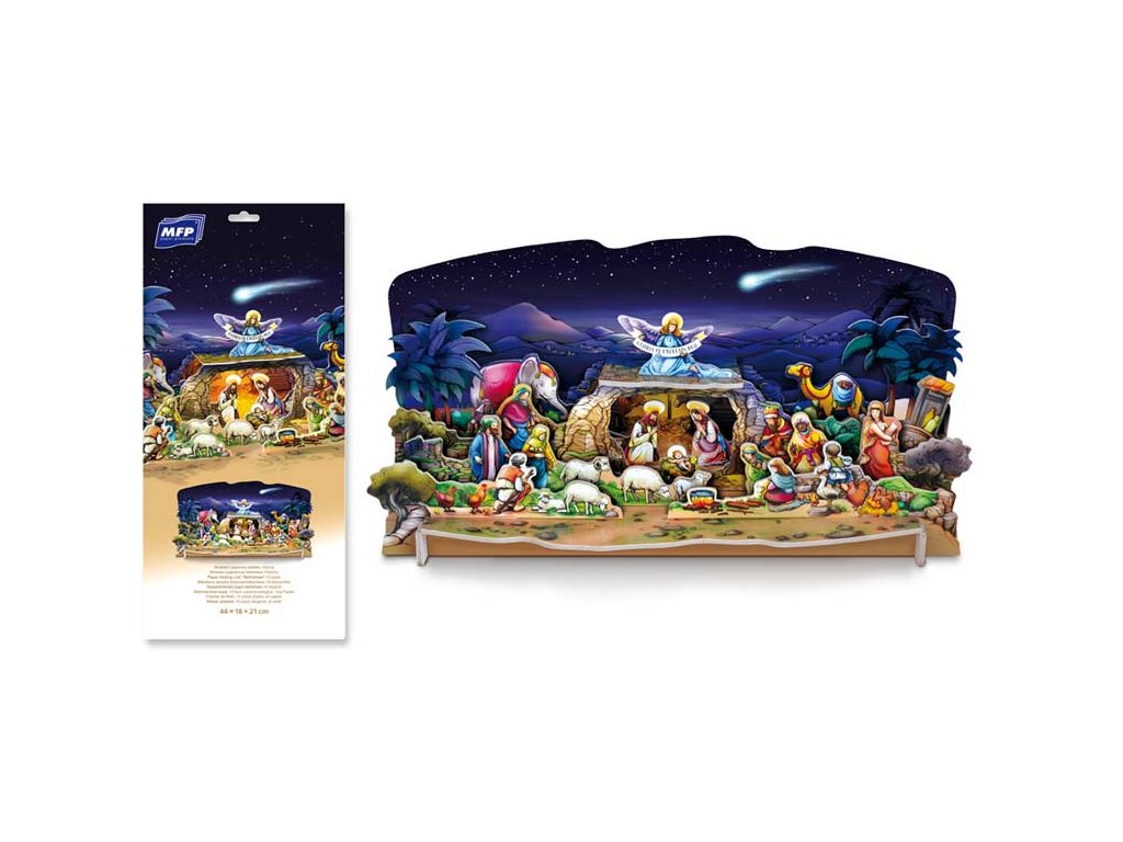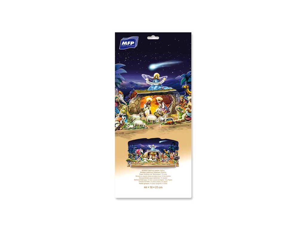 Vysekávaný, jednoducho zostaviteľný betlehem bez lepidla a nožníc. Oživí Vašu miestnosť a naladí Vám doma vianočnú atmosféru. Nájdete tu kreslené postavičky Jozefa Lady, stačí ich iba vytlačiť z podložky a potom zostaviť do finálnej podoby. Betlehem je vyrobený z 3 mm hrubej lepenky, potiahnutej laminom. Dodávame v plastovom vrecku so závesom. Uvedená cena je za 1 ks.Dodatočné parametre