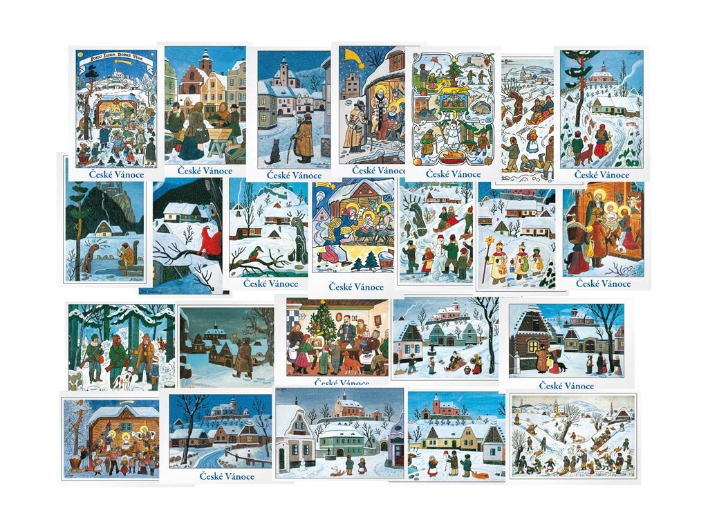 V této sadě pohledů najdete 18 motivů s nejznámějšími Vánočními obrázky Jozefa Ladu. Malíř Jozef Lada Vás ve svých obrázcích zavede do zasněžených Hrusic, na návsi potkáme ponocného, u potoka sáňkují děti a nesmí chybět ani Ladův tradiční betlém. Na zadní straně těchto pohledu není předtištěný text s přáním. Rozměr: A6 10,5 x 14,8 cm Papier: pohľadnicový kartón 300 g Text: 0/6 Uvedená cena je za 1ks, 50 ks je zatavených do fólie.Dodatočné parametre