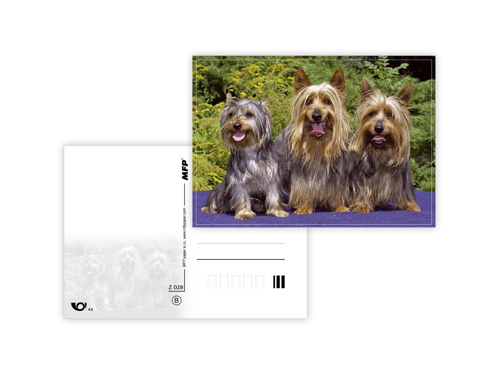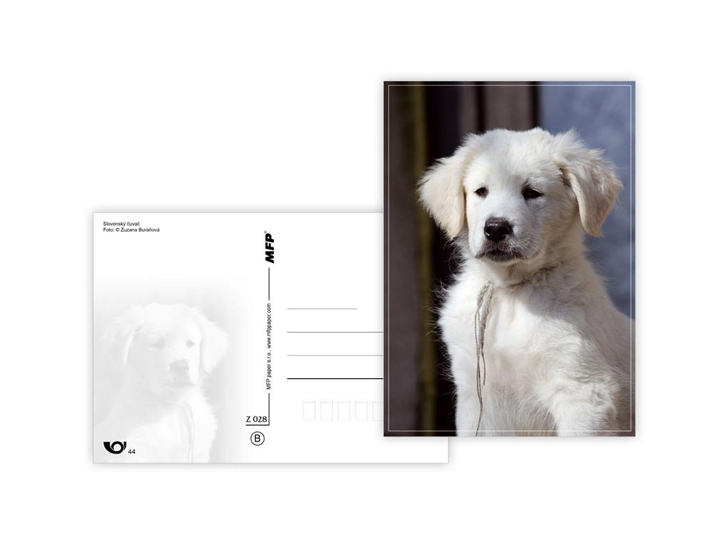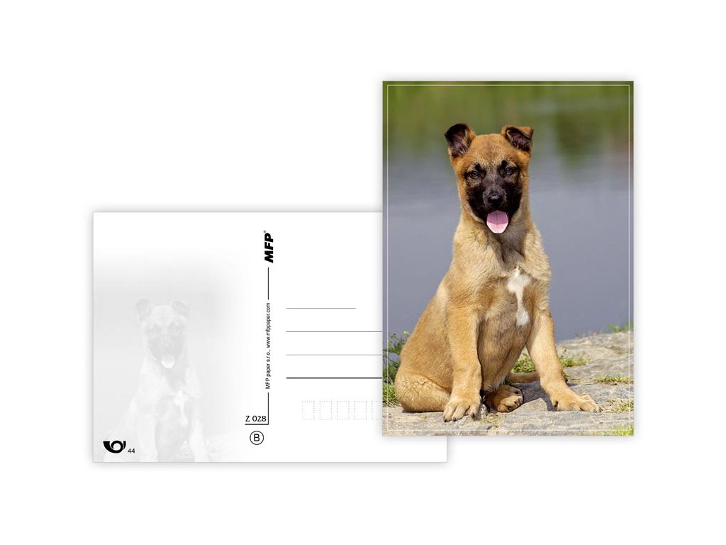 Pohľadnica s motívom zvierat. Nájdete tu obrázky rôznych plemien psov a šteniat. Dodávame v mixe podľa skladových zásob. Pohľadnice sú bez textu na zadnej strane. Uvedená cena je za 1 ks Rozmery: A6 10,5 x 14,8 cm Papier: pohľadnicový kartón 240 g Povrchová úprava: UV lak Text: 0/6Dodatočné parametre