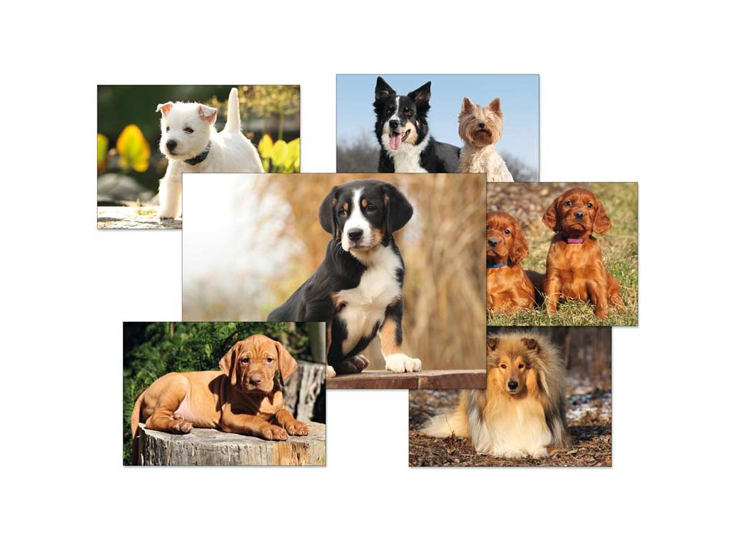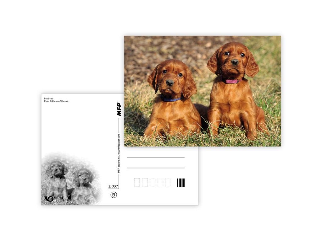 Pohľadnica so zvieracími motívmi. Na pohľadniciach nájdete obrázky psov a šteniat rôznych rás. Dodávame v mixe podľa skladových zásob. Pohľadnice sú bez textu na zadnej strane. Uvedená cena je za 1 ks Rozmery: A6 10,5 x 14,8 cm Papier: pohľadnicový kartón 300 g Povrchová úprava: UV lak Text: 0/6Dodatočné parametre