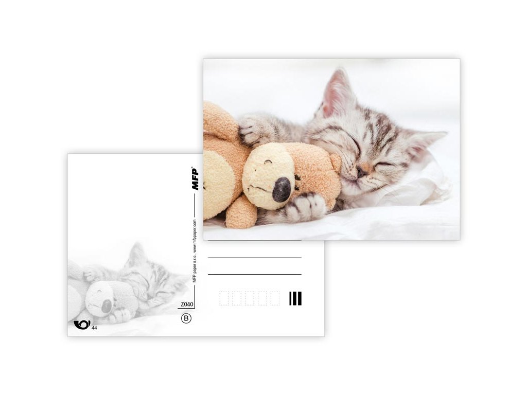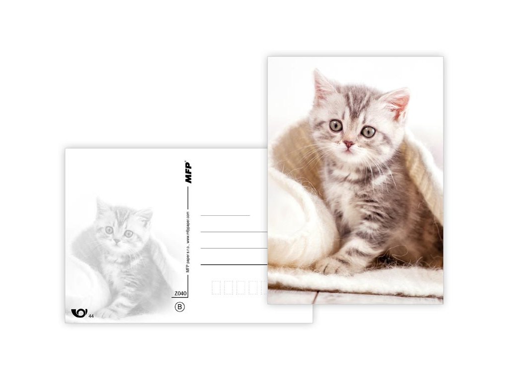 Pohlednice s motivem zvířat. Dodáváme v mixu podle skladové zásoby. Pohlednice jsou bez textu na zadní straně. Papír: pohlednicový karton 240 g Povrchová úprava: UV lak Text: bez textu Uvedená cena je za 1 ks.Dodatočné parametre