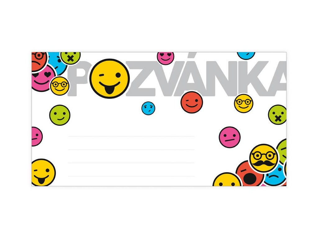 Pozvánka na narodeninovú oslavu a párty so smajlíkmi. – Budeš mať narodeninovú párty a chceš pozvať kamarátov? Pošli im pozvánku na oslavu! Na pozvánke sú riadky, kde si vypíšeš napr. meno, dátum a čas oslavy, miesto oslavy alebo menší odkaz. Uvedená cena je za 10 ks.Dodatočné parametre