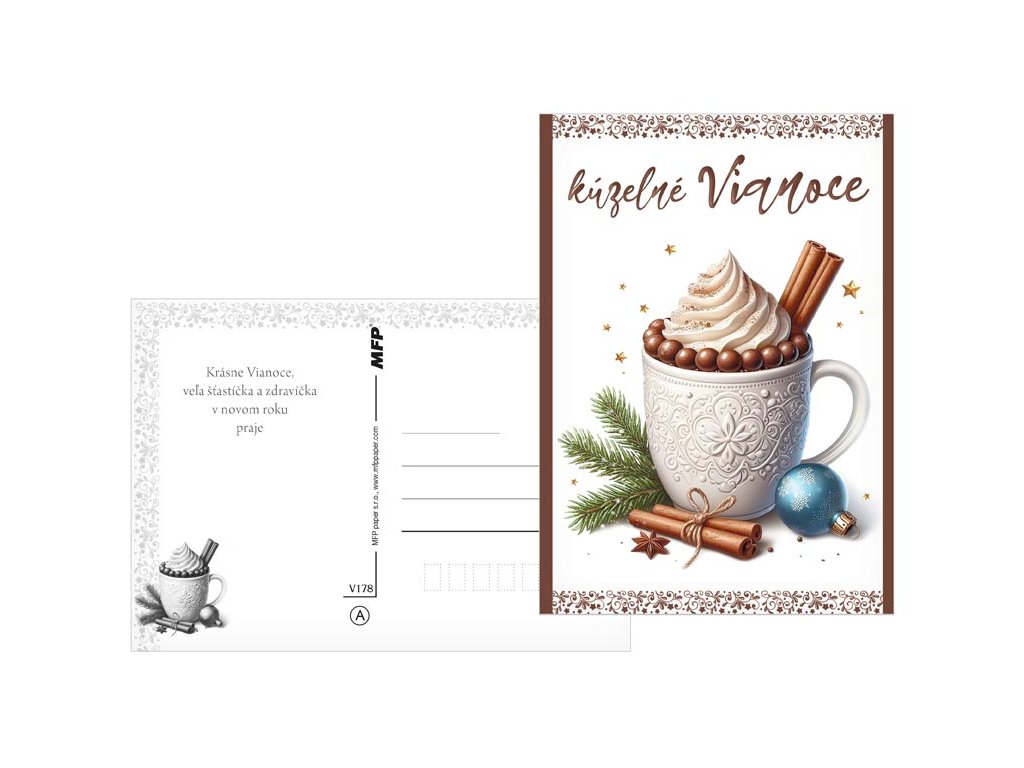 Pohľadnica v mixe vianočných motívov. Text obsahuje 6 pohľadníc zo 6. Text na prednej strane: veselé Vianoce, radostné Vianoce, veselé Vianoce, radostné Vianoce, kúzelné Vianoce, kúzelné Vianoce Text na zadnej strane: Pohľadnica 1: Aby do celého domu prenikla pokojná vianočná atmosféra a vydržala po celý rok praje Pohľadnica 2: Šťastné a veselé Vianoce, veľa darčekov, radosti a prekvapení pod vianočným stromčekom praje Pohľadnica 3: Pokojné prežitie vianočných sviatkov a v novom roku všetko dobré praje Pohľadnica 4: Pokojné prežitie vianočných sviatkov, veľa šťastia, zdravia a mnoho úspechov v novom roku praje Pohľadnice 5: Krásne Vianoce a nový rok plný šťastia, zdravia a lásky praje Pohľadnice 6: Krásne Vianoce, veľa šťastíčka a zdravíčka v novom roku praje Text: 6/6 Povrchová úprava: bez úpravy Papier: pohľadnicový kartón 240 g Dodávame v mixe po 6 ks podľa skladovej zásoby. Uvedená cena je za 1 ks.Dodatočné parametre