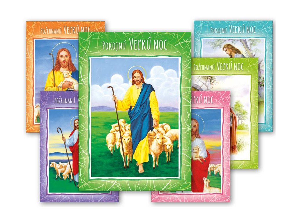 Pohľadnica s veľkonočným motívom. Text obsahuje 6 pohľadníc zo 6. Text na prednej strane: Pokojnú Veľkú noc, Požehnanú Veľkú noc Povrchová úprava: UV lak Papier: pohľadnicový kartón 240 g Text: 6/6 Dodávame v mixe podľa skladových zásob. Uvdená cena je za 1 ks.Dodatočné parametre
