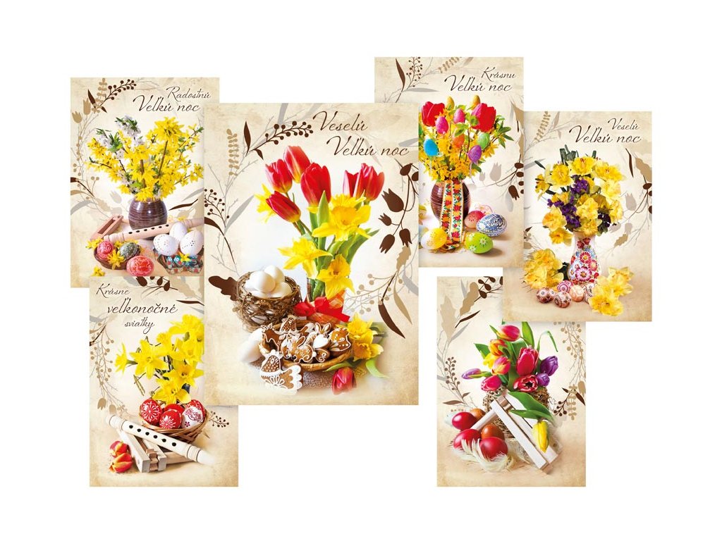 Pohľadnica s veľkonočným motívom. Text na zadnej strane obsahuje 6 pohľadníc zo 6. Text na prednej strane: Radostnú Vel'kú noc, Veselú Vel'kú noc, Krásnú Vel'kú noc, Krásne vel'konočné sviatky Text na zadnej strane: Pohľadnica 1: V radosti a harmónii prežité jarné sviatky a vel'a radosti z prvých jarných lúčov praje Pohľadnica 2: Krásnu Vel'kú noc a prijemné prežitie sviatkov jari Pohľadnica 3: Vel'konočné sviatky prežité v pokoji a radosti praje Pohľadnica 4: Radostnú Vel'kú noc a prijemnú náladu praje Pohľadnica 5: Radostné prežitie velˇkonočných sviatkov zo srdca praje Pohľadnica 6: Krtásne prežitie velˇkonočných sviatkov a bohatú výslužku zo srdca praje Papier: pohľadnicový kartón 240 g Povrchová úprava: UV lak Text: 6/6 Dodáváme v mixu po 6 ks dle skladové zásoby. Uvedená cena je za 1 ks.Dodatočné parametre