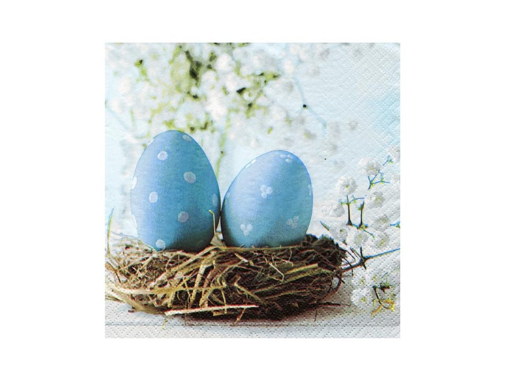 Papierový veľkonočný obrúsok. Obrúsok je z trojvrstvového papiera. Krásne veľkonočné obrúsky dodajú prestretému stolu nádych prichádzajúcej jari a vyčaria príjemnú atmosféru pri slávnostnom obede alebo pri večeri. MOTIV: modré kraslice POČET OBRÚSKOV V BALENÍ: 20 ks Uvedená cena je za 1 balenie po 20 ks.Dodatočné parametre