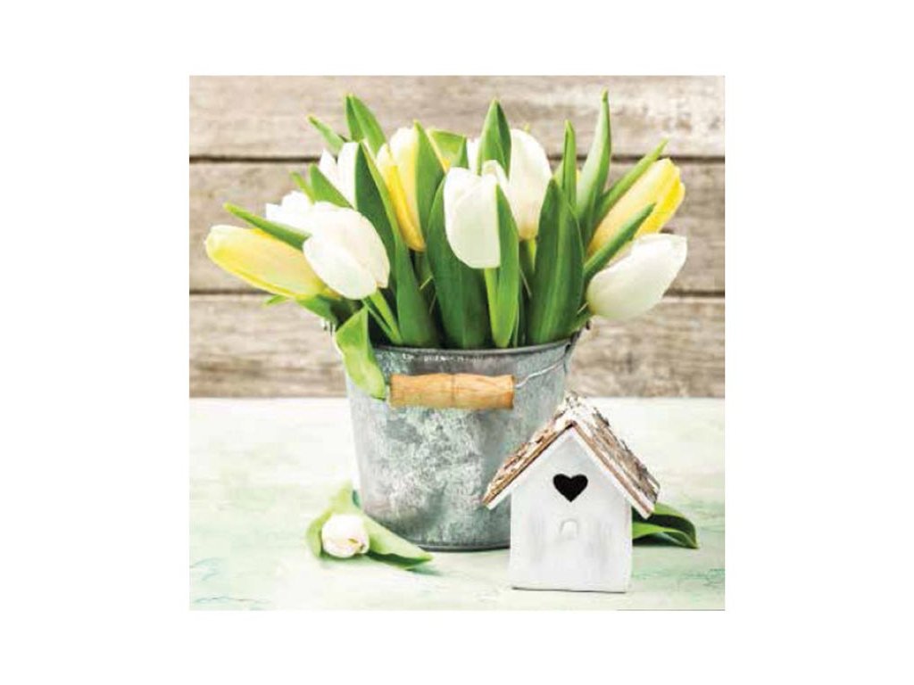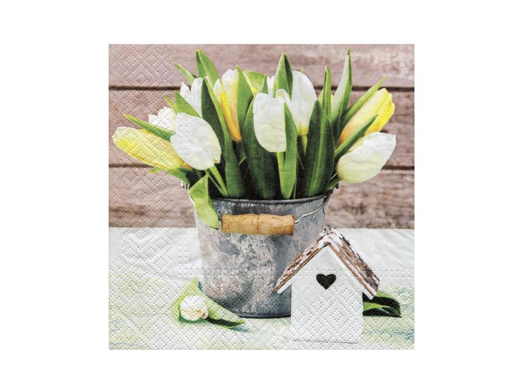 Papierový veľkonočný obrúsok. Obrúsok je z trojvrstvového papiera. Krásne veľkonočné obrúsky dodajú prestretému stolu nádych prichádzajúcej jari a vyčaria príjemnú atmosféru pri slávnostnom obede alebo pri večeri. MOTÍV: tulipány, kraslice POČET OBRÚSKOV V BALENÍ: 20 ks Uvedená cena je za 1 balenie po 20 ks.Dodatočné parametre