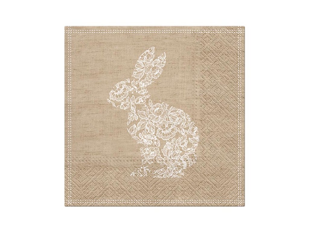 Papierový veľkonočný obrúsok. Servítky v prírodnom vzhľade s motívom čipkovaného zajačika krásne doplnia váš interiér. Servítky sú z veľmi kvalitného trojvrstvového papiera. Vhodné aj na obrúskovú techniku. MOTÍV: zajačik POČET OBRÚSKOV V BALENÍ: 20 ks Uvedená cena je za 1 balenie po 20 ks.Dodatočné parametre