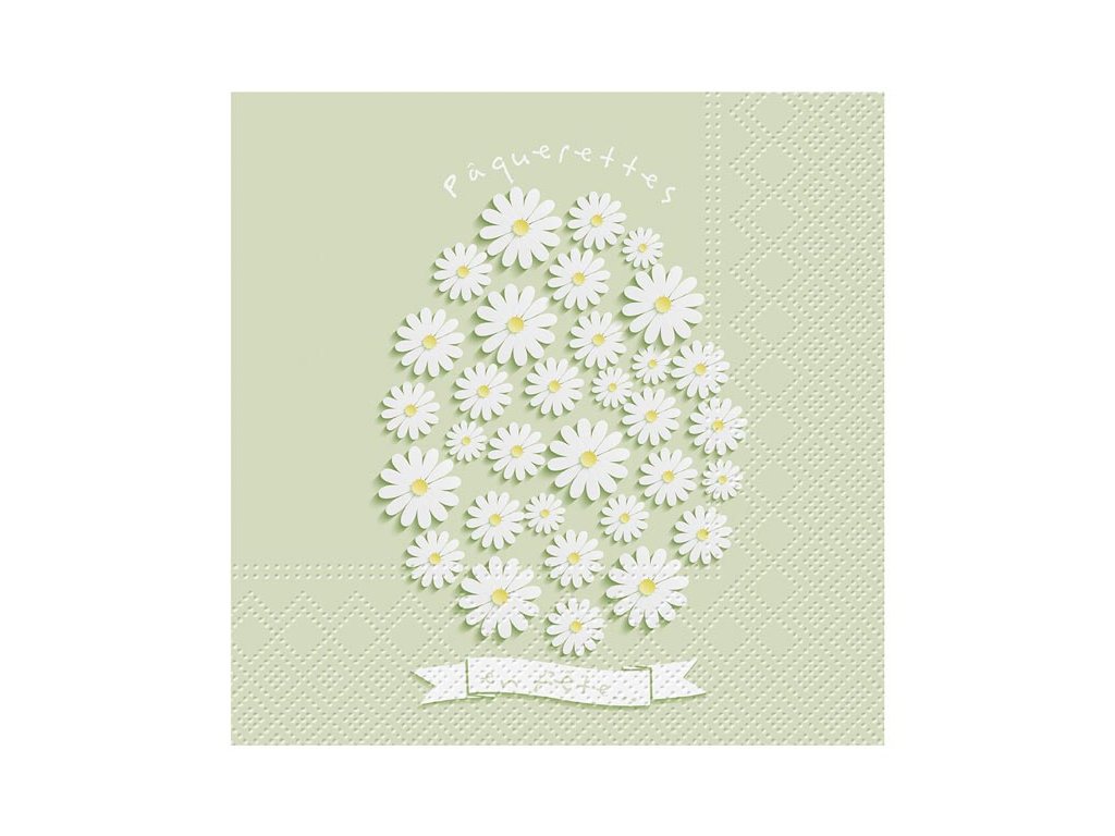 Papierový veľkonočný obrúsok. Obrúsky s kraslicou z margarét doladí hravo váš jarný interiér. Obrúsok je kvalitný z trojvrstvového papiera. Vhodný aj na servítkovú techniku. MOTÍV: vajíčko z margaréty POČET OBRÚSKOV V BALENÍ: 20 ks Uvedená cena je za 1 ks balenia po 20 ks.Dodatočné parametre