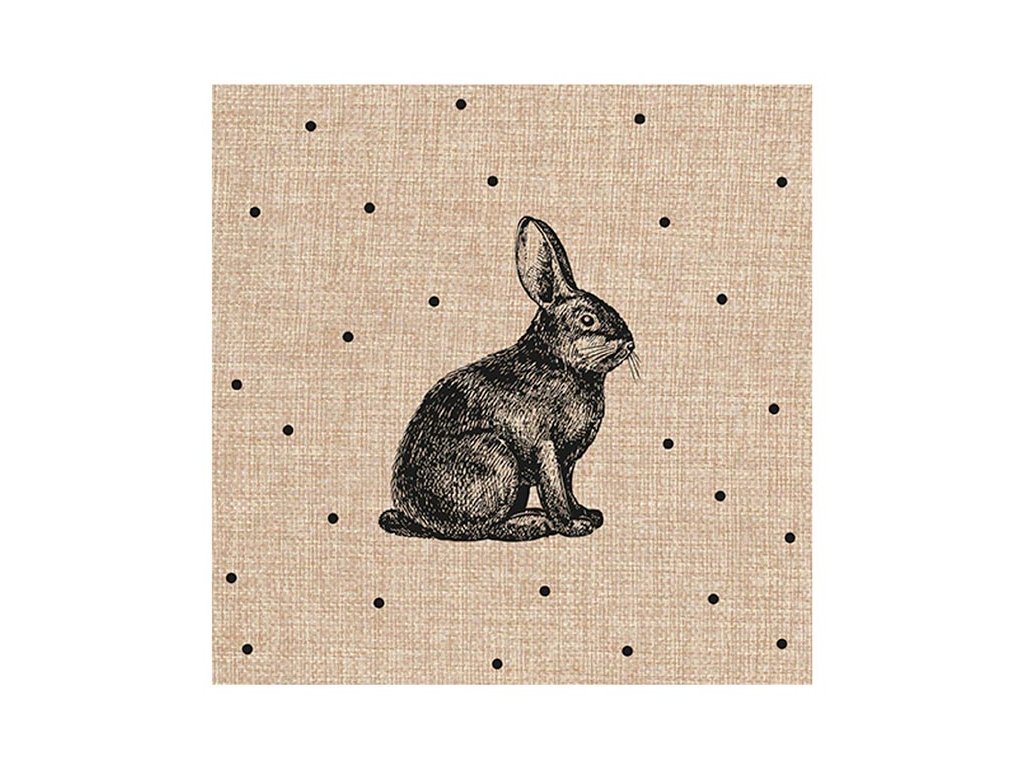 Papierový veľkonočný obrúsok. Servítky v prírodnom štýle s čiernymi bodkami a tušovou kresbou zajačika prinesú na váš prestretý stôl náladu Veľkej noci v prírodnom štýle. Obrúsok je vyrobený z kvalitného trojvrstvového papiera. Vhodné aj na obrúskovú techniku. MOTÍV: zajačik, bodky POČET OBRÚSKOV V BALENÍ: 20 ks Uvedená cena je za 1 balenie po 20 ks.Dodatočné parametre