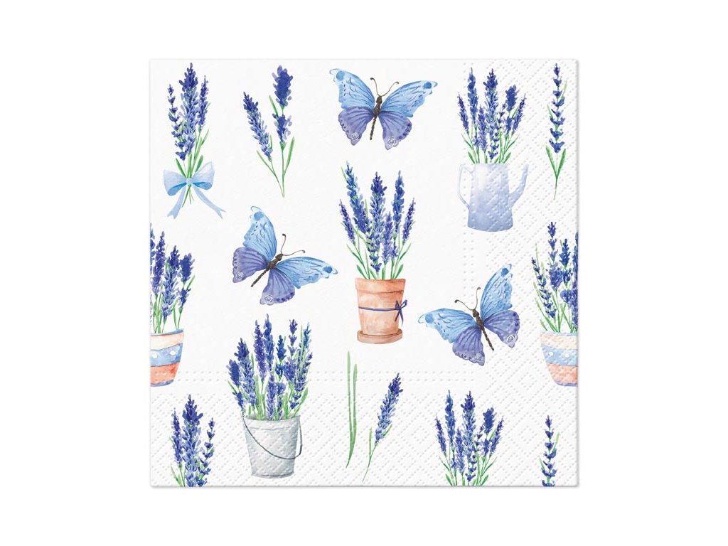Papierový veľkonočný obrúsok. Krásne veľkonočné obrúsky s obrázkami levandule a motýľov dodajú prestretému stolu nádych jari a vyčarujú príjemnú atmosféru pri slávnostnom obede alebo večeri. Obrúsok je vyrobený z kvalitného trojvrstvového papiera. Vhodné aj na obrúskovú techniku a rôzne dekorácie. MOTÍV: levanduľa, motýle POČET OBRÚSKOV V BALENÍ: 20 ks Uvedená cena je za 1 balenie po 20 ks.Dodatočné parametre
