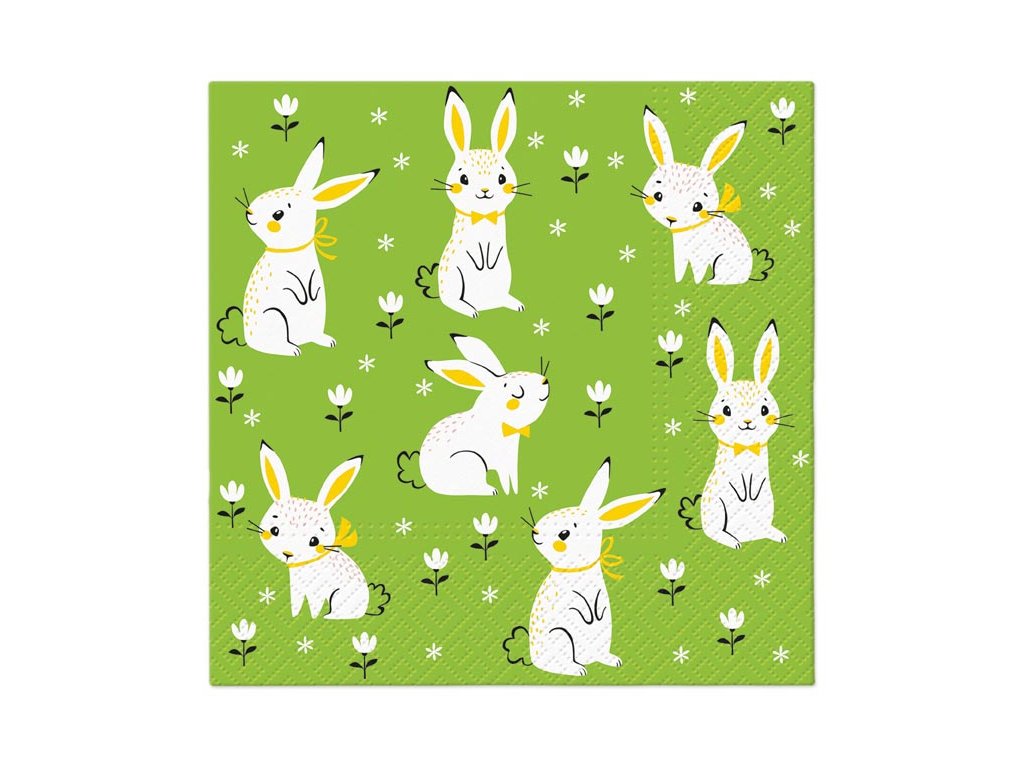 Papierový veľkonočný obrúsok. Krásne veľkonočné obrúsky s obrázkami zajačikov dodajú prestretému stolu nádych jari a vyčarujú príjemnú atmosféru pri slávnostnom obede alebo večeri. Obrúsok je vyrobený z kvalitného trojvrstvového papiera. Vhodné aj na obrúskovú techniku a rôzne dekorácie. FARBA: zelená MOTÍV: zajačikovia POČET OBRÚSKOV V BALENÍ: 20 ks Uvedená cena je za 1 balenie po 20 ks.Dodatočné parametre