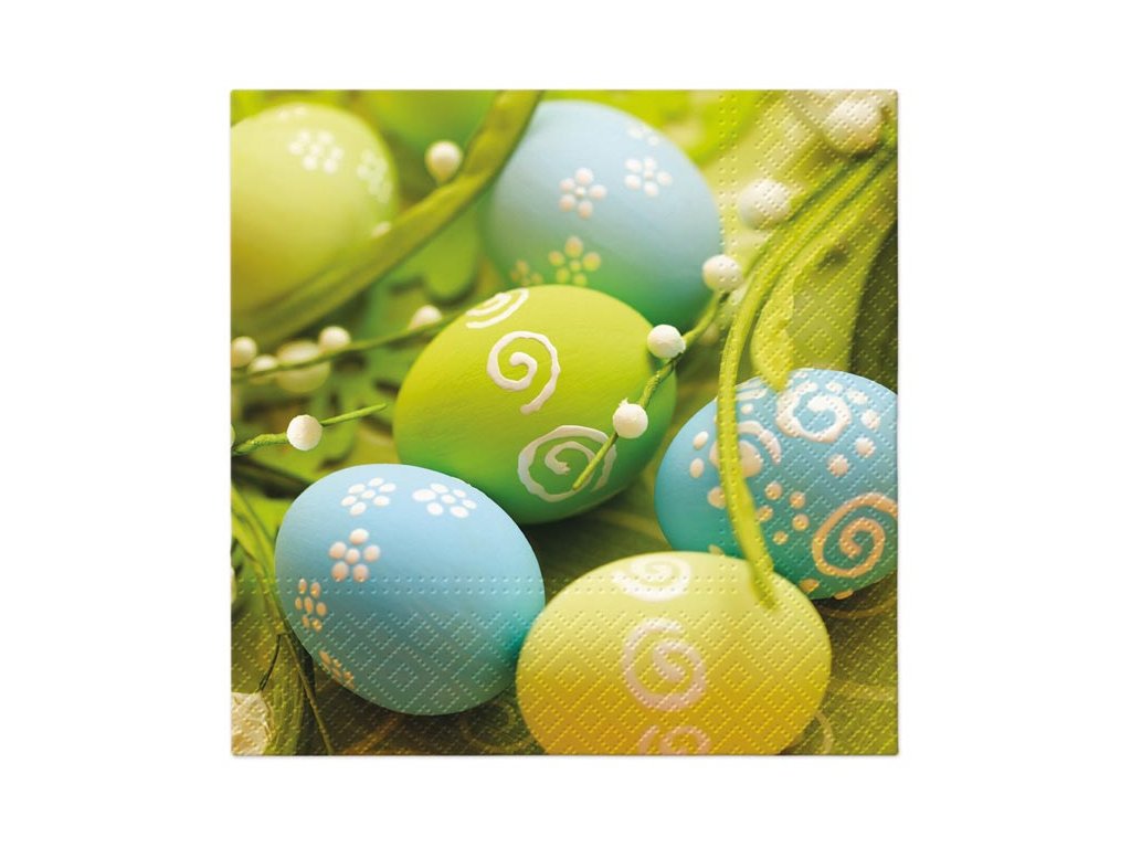 Papierový veľkonočný obrúsok. Krásne veľkonočné obrúsky s obrázkami veľkonočných vajíčok dodajú prestretému stolu nádych jari a vyčarujú príjemnú atmosféru pri slávnostnom obede alebo večeri. Obrúsok je vyrobený z kvalitného trojvrstvového papiera. Vhodné aj na obrúskovú techniku a rôzne dekorácie. MOTÍV: veľkonočné vajíčka POČET OBRÚSKOV V BALENÍ: 20 ks Uvedená cena je za 1 balenie po 20 ks.Dodatočné parametre