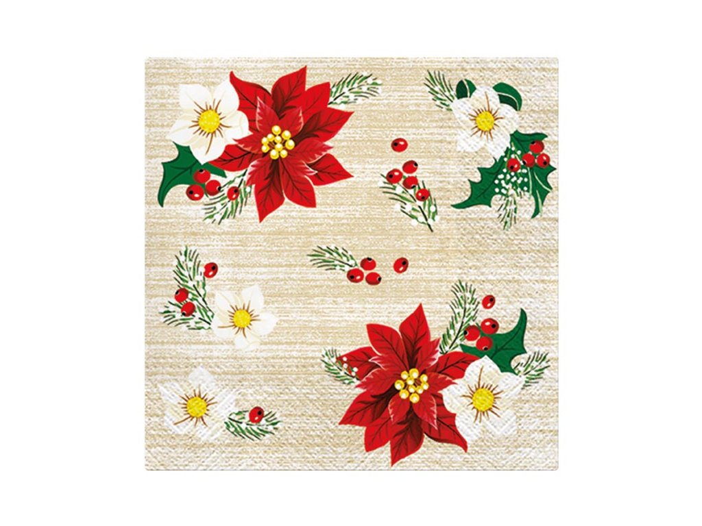 Papierový vianočný obrúsok s motívom vianočnej hviezdy s bielymi kvetmi a vetvičkami. Je vyrobený z kvalitného trojvrstvového papiera. Tento obrúsok je ideálny na slávnostné stolovanie počas vianočných sviatkov. Jeho farebná kombinácia červenej, bielej a zelenej farby sa krásne kombinuje s tradičnou vianočnou výzdobou a dotvára atmosféru pri rodinných večeroch alebo slávnostných stretnutiach. POČET OBRÚSOK V BALENÍ: 20 ks MOTÍV: vianočná hviezda, biele kvety, vetvičky Uvedená cena je za 1 balenie po 20 ks.Dodatočné parametre