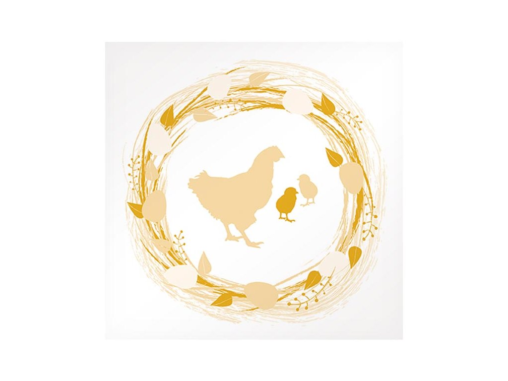 Ozdobte svoj veľkonočný stôl týmto elegantným obrúskom, ktorý spája jemnú tradíciu s prírodnou krásou. Dodá vášmu stolovaniu hrejivú atmosféru a štýlový nádych sviatočnej pohody. Je ideálny na slávnostné prestieranie veľkonočného stola, zdobenie košíkov alebo ako jemný detail na zvýraznenie prírodných a tradičných veľkonočných dekorácií. MOTÍV: sliepka, kuriatka POČET OBRÚSKOV V BALENÍ: 20 ks Uvedená cena je za 1 balenie po 20 ks.Dodatočné parametre