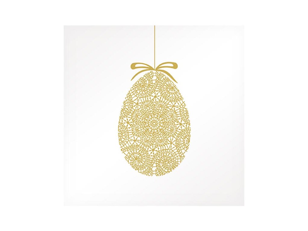 Máte radi jednoduchú eleganciu? Tento zlatý obrúsok s motívom veľkonočných vajíčok v jemnom čipkovom štýle prinesie na váš veľkonočný stôl sofistikovanosť. a sviatočnú iskru. Ak hľadáte detail, ktorý premení váš stôl na elegantný sviatočný dekoráciu, tento obrúsok je tou správnou voľbou. MOTÍV: Veľkonočné vajíčka POČET OBRÚSKOV V BALENÍ: 20 ks Uvedená cena je za 1 balenie po 20 ks.Dodatočné parametre